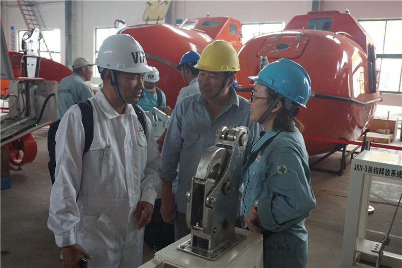 船舶服务精英人员来到江南在线,对厂家设备的新设计,新产品进行深层次的学习和服务训练,成为佼燕救生设备的优秀服务商,为佼燕的客户提供更优质,更专业,更及时的服务.